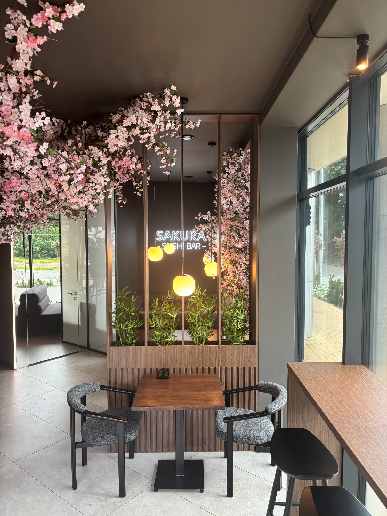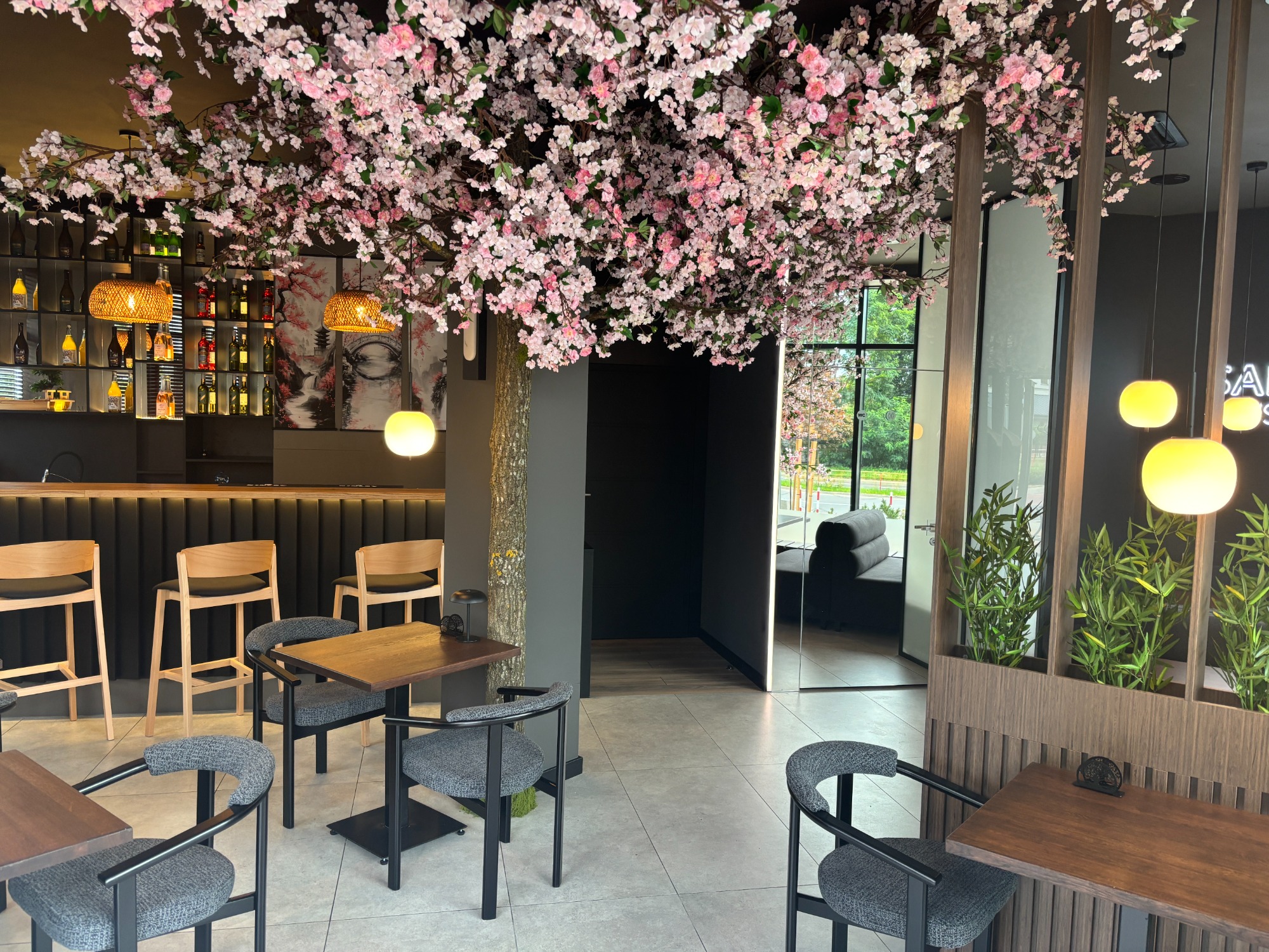 Nasz lokal został zaprojektowany tak, aby przenieść Cię prosto do Japonii. Centralnym punktem restauracji jest drzewo wiśni, które tworzy niepowtarzalną atmosferę i podkreśla inspirację krajem kwitnącej wiśni. Subtelne japońskie dekoracje, eleganckie oświetlenie i nowoczesny wystrój sprawiają, że Sakura Sushi to nie tylko miejsce na posiłek, ale także przestrzeń do relaksu i spotkań w wyjątkowym klimacie.